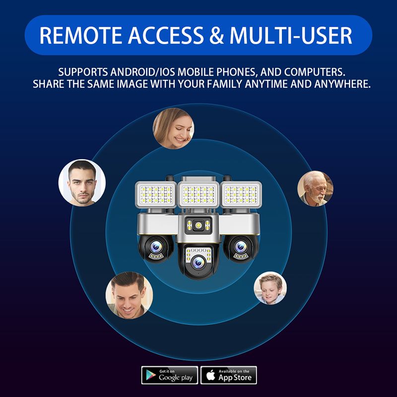 The VRT-SC30A is a solar-powered, three-lens 4G/Wi-Fi-enabled PTZ security camera built for robust, all-weather outdoor monitoring. Managed through the V380 Pro App, users can access live view, remote PTZ control, playback, and instant alerts on Android and iOS devices.