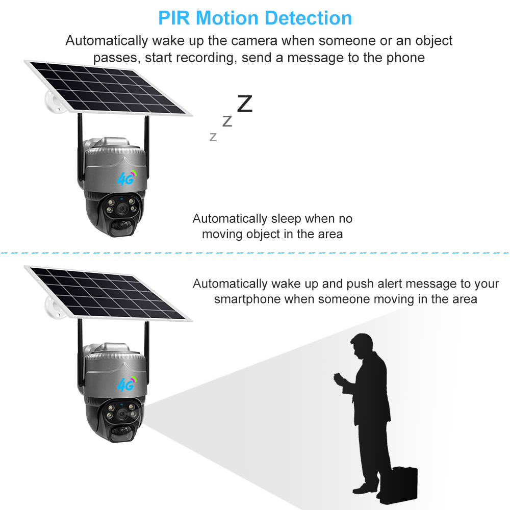 The VRT-VC20 AOV 4G Solar Camera is engineered for users who need 24/7 continuous recording with minimal power consumption. Its AOV (All-Time-On Video) technology works by lowering the frame rate to the most efficient level, allowing the camera to record continuously while conserving energy. When paired with a TF card up to 128GB, it can store footage for months—up to nearly a year under optimal settings.